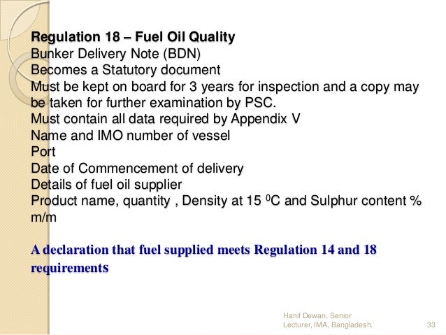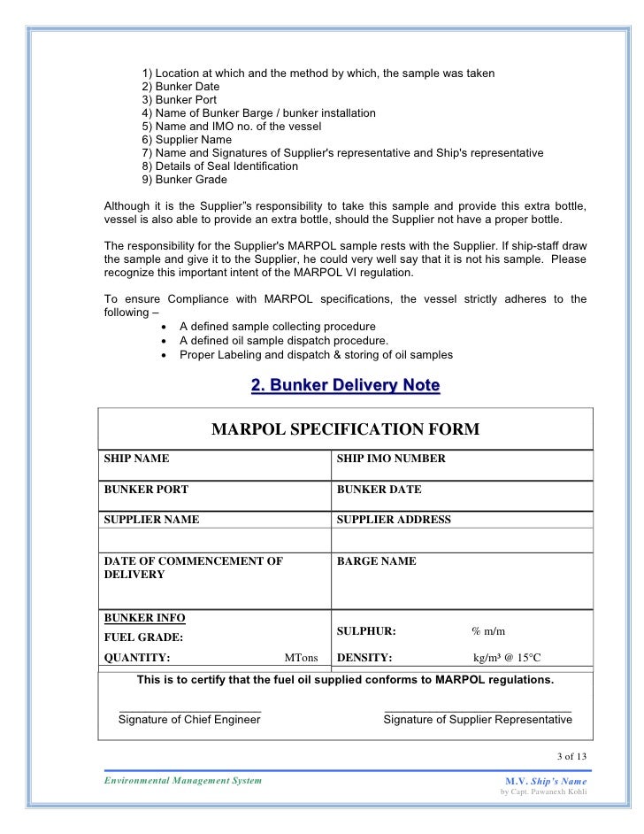 The burning of any fuel onboard ship, creates exhaust gases or emissions and most of these have an effect on the environment. Date of commencement of delivery Bunker delivery note (bdn) the standard document required by annex vi of marpol which contains information on fuel oil delivery: Fuel oil data collection system. Under marpol annex vi, it is a statutory requirement that a bunker delivery note (bdn) includes at least the stipulated information and declaration, and this must be.